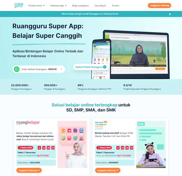Aplikasi belajar online ini menyediakan semua jenjang kelas dan mata pelajaran inti, dengan kurikulum nasional, dan dipandu oleh guru yang .